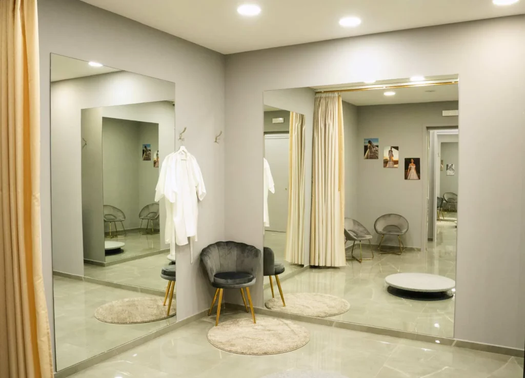 Solitamente la durata dell’appuntamento varia in base alla tipologia di abito. Per gli abiti da sposa e sposo la durata è di circa due ore, per gli abiti da cerimonia 1 ora-1 ora e mezza.