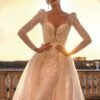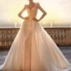 Uno spettacolare abito a sirena che può trasformarsi in uno stile principessa con l’aggiunta di una sopragonna. Con un ricamo incredibilmente intricato sul corpetto e sulla parte superiore della gonna che definisce i contorni del tuo corpo.