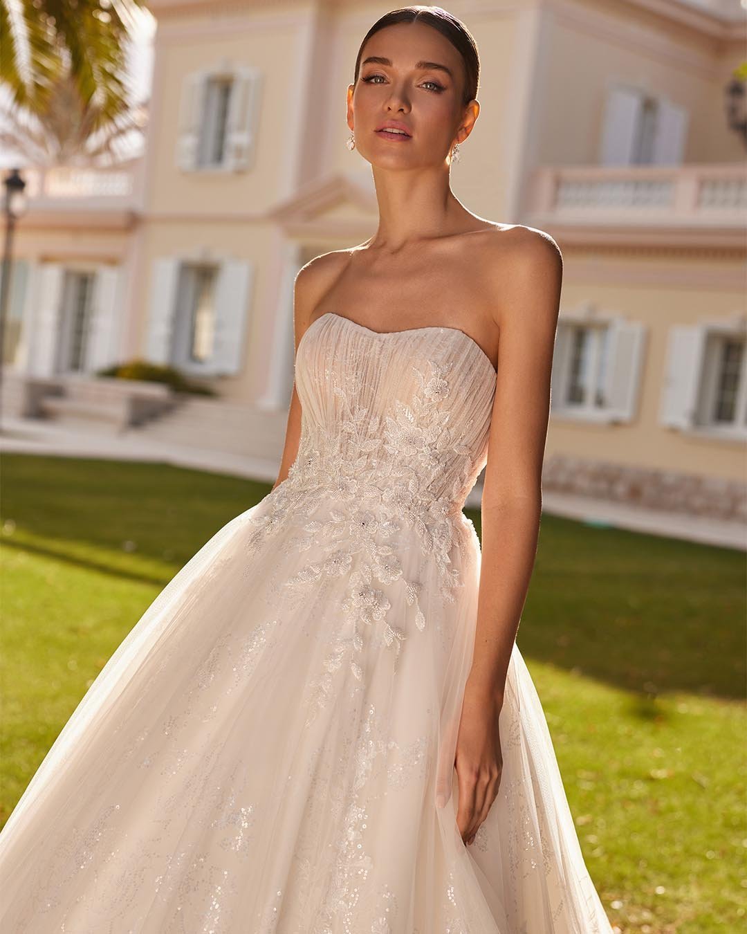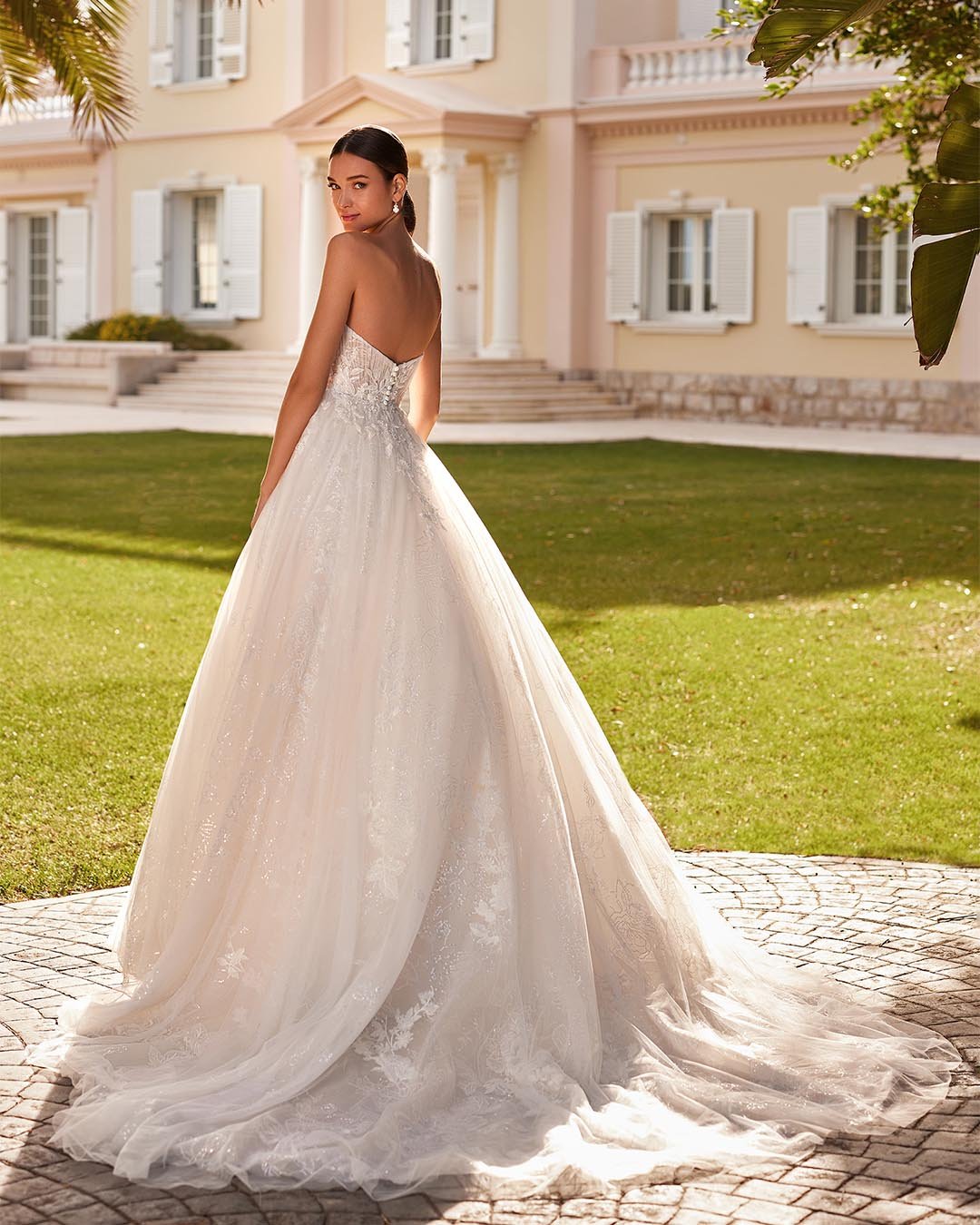 Abito da sposa principessa lungo confezionato in organza in seta e pizzo, dal fascino regale e intramontabile. Il corpetto con scollatura off-the-shoulder avvolge il décolleté con grazia, mentre la voluminosa gonna in organza scivola leggera creando un effetto sontuoso e romantico. Un modello che incarna eleganza e femminilità, ideale per la sposa che sogna un look fiabesco.